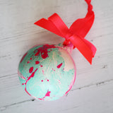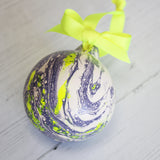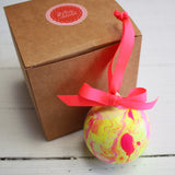 Add a pop of neon to your festive decor with a hand marbled ceramic bauble. The marbling technique means each bauble is completely unique!