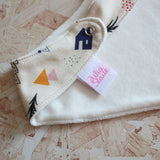 The handmade bib is made from 100% organic cotton and backed with organic velour.  Choose from pink, cream or blue. Fits ages 0-6 months.